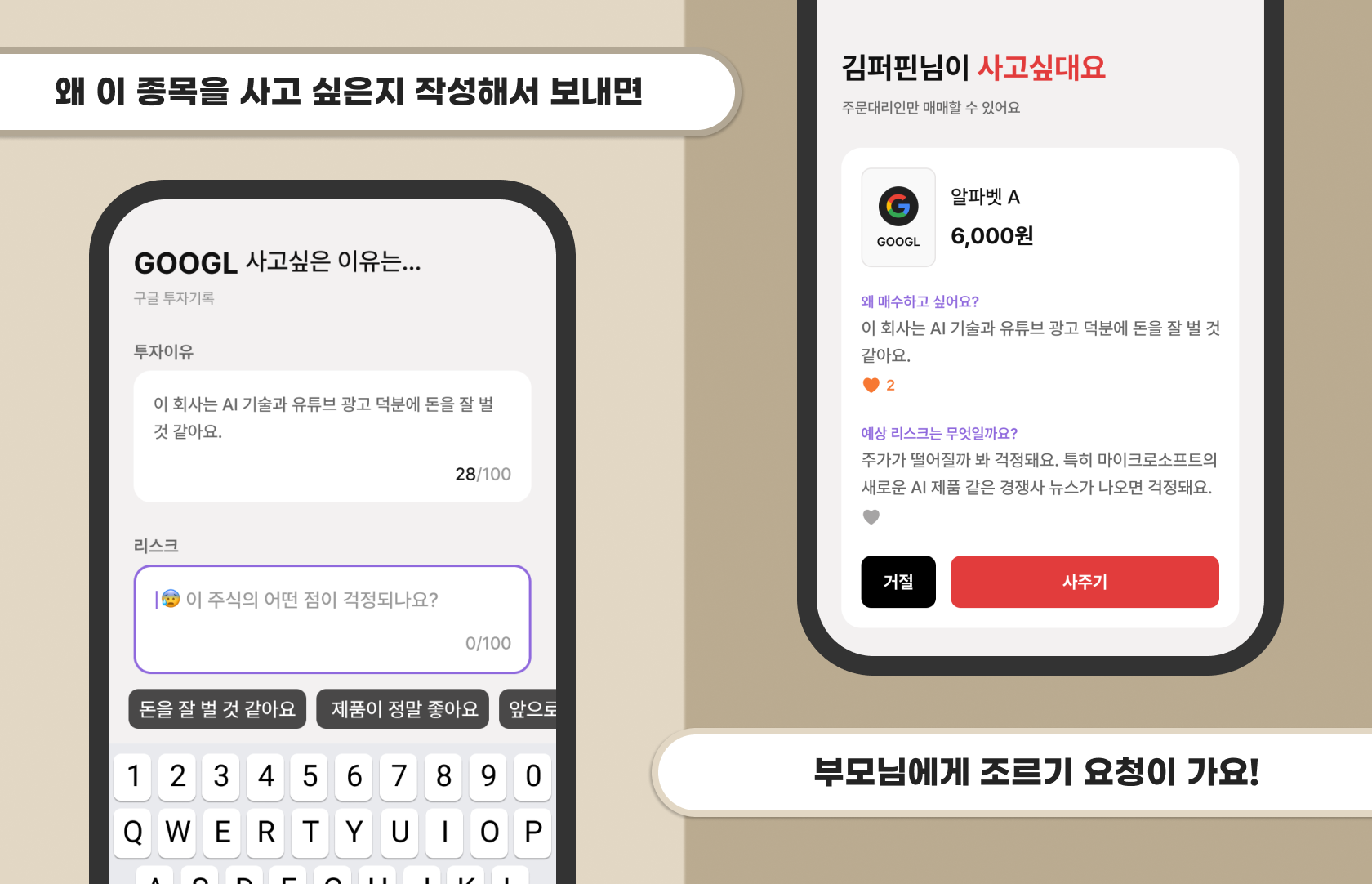 퍼핀 앱에서 아이가 직접 사고 싶은 종목을 선택해 부모님께 '대리 주문'을 요청하세요. 교육 효과는 높이고 세무 리스크는 낮출 수 있습니다.